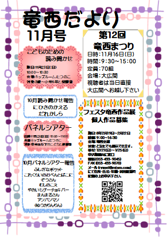 ふれあい交流センター > お知らせ > ふれあい交流センター竜西 > 竜西だより 11月号 発行いたしました♪