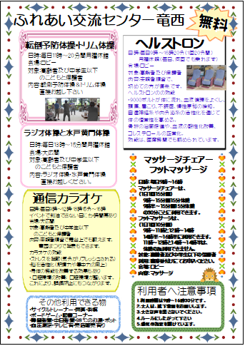 ふれあい交流センター > お知らせ > ふれあい交流センター竜西 > 竜西 施設のご利用に関するご案内♪