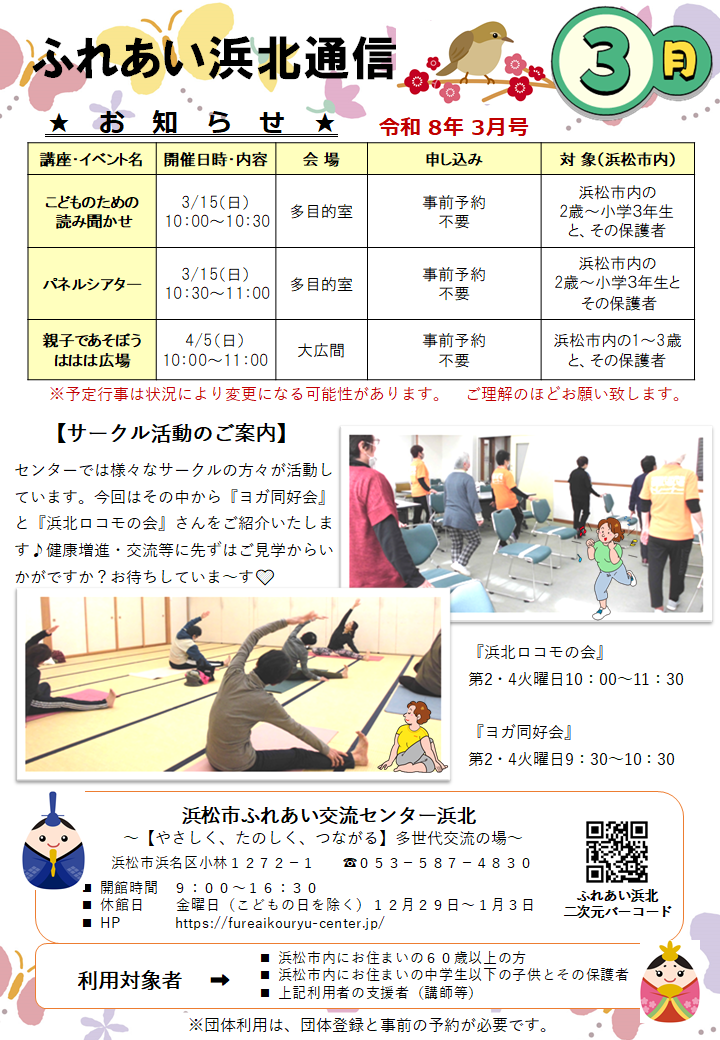 ふれあい交流センター > お知らせ > ふれあい浜北通信 3月号 発行いたしました♪