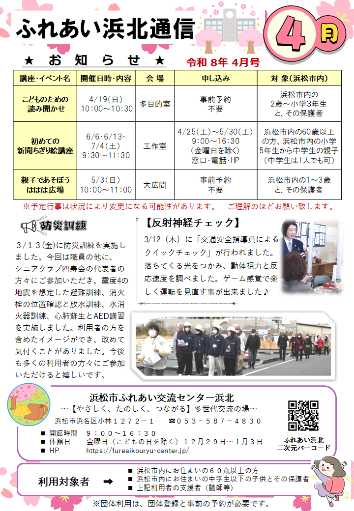 ふれあい交流センター > お知らせ > ふれあい浜北通信 4月号 発行いたしました♪